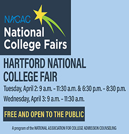FREE and open to the public, attendees have the opportunity to meet one-on-one with college admission representatives from across the country, including some international institutions. Students and parents can discuss individual needs with college experts at the fair’s counseling center. There will also be workshops to attend throughout the day on financial aid, test preparation and more. A list of participating colleges is available on nacacfairs.org/hartford